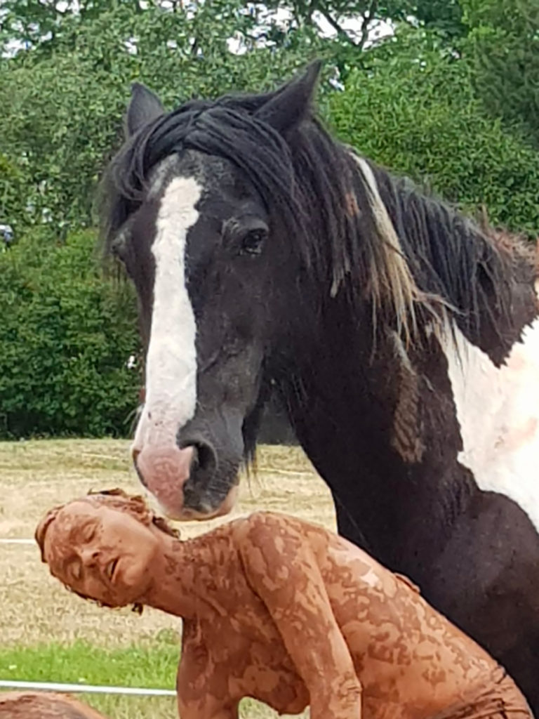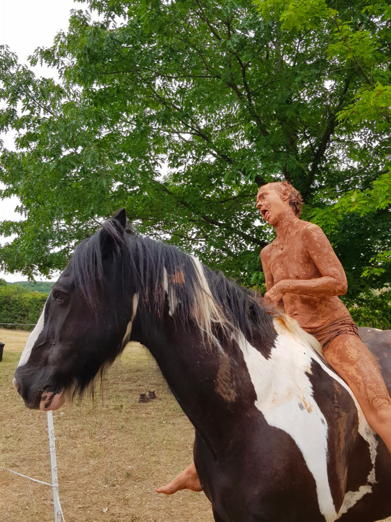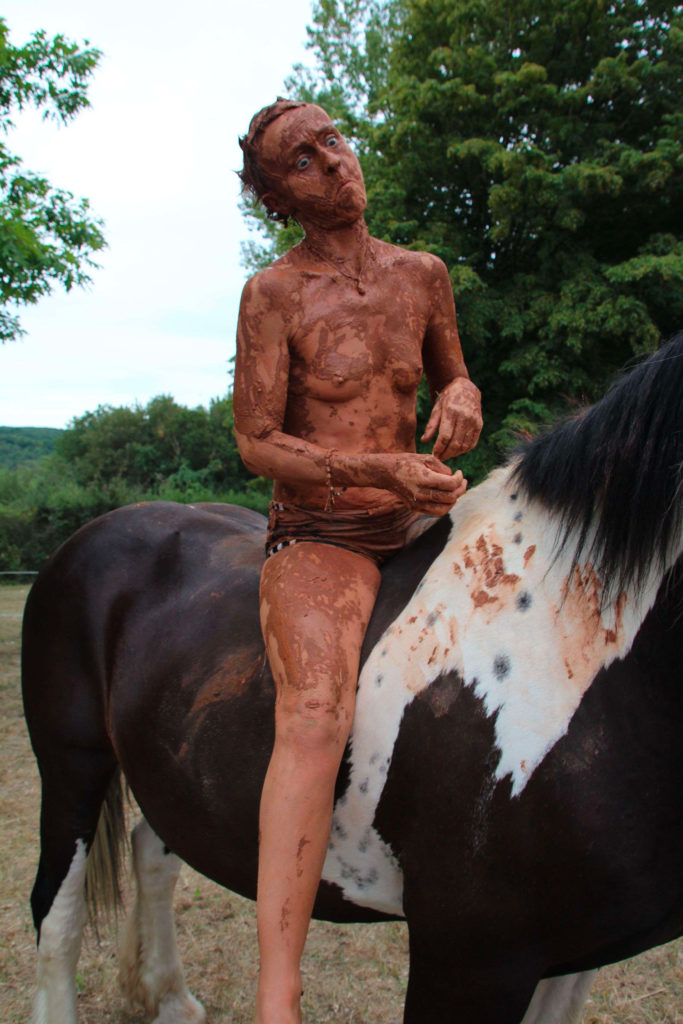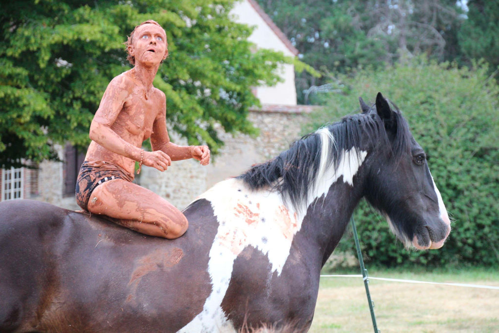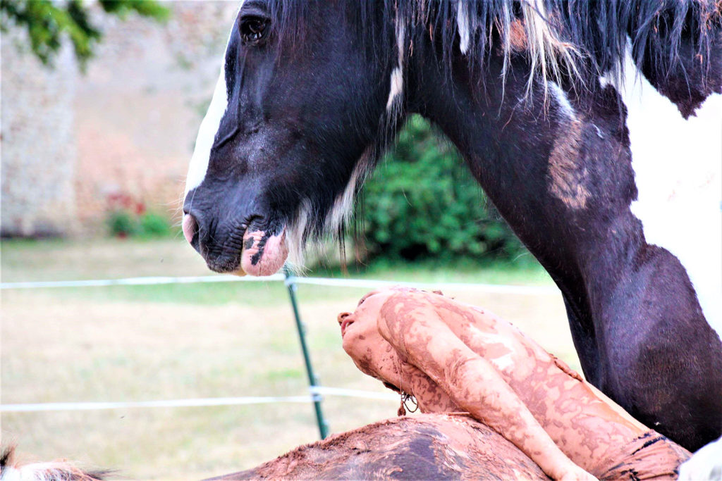 Au fur et à mesure de la relation, la femme retrouve la lucidité de l’enfance, plongeant dans l’animalité originelle. La boue, l’eau modifient son corps. sa danse, son rythme et les chevaux accompagnent ses pérégrinations charnelles et émotionnelles.